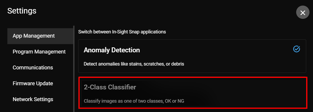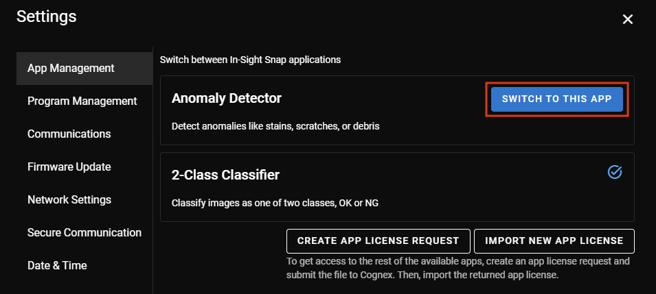 En la ficha Gestión de aplicaciones de Ajustes, puede cambiar de una aplicación a otra disponible. Haga clic sobre Cambiar a esta aplicación para cambiar de una aplicación a otra. Se visualiza una marca de verificación a la derecha del nombre de la aplicación que se está utilizando.