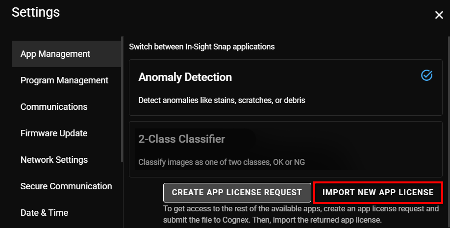 Una vez haya recibido la nueva licencia de la aplicación, haga clic sobre Importar nueva licencia para la aplicación y aparecerá entonces la ventana emergente para importar la nueva licencia para la aplicación.
