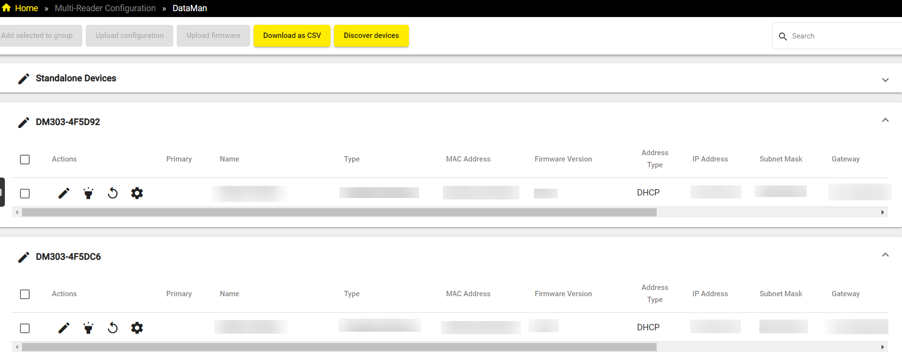 Click on the Discover Devices button in the header of the web interface to force a rediscovery if you have connected a new device after the initial auto-discovery.