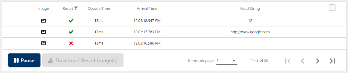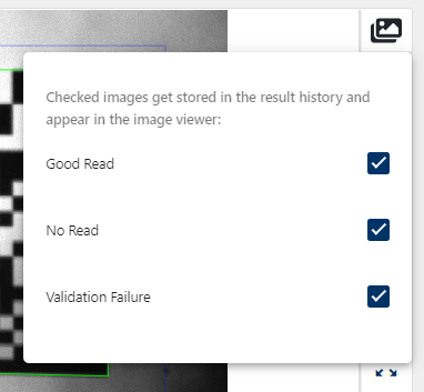 You can also filter the feed to display only Good Read, No Read, or Validation Failure results by clicking on the Images icon in the top right corner of the display.