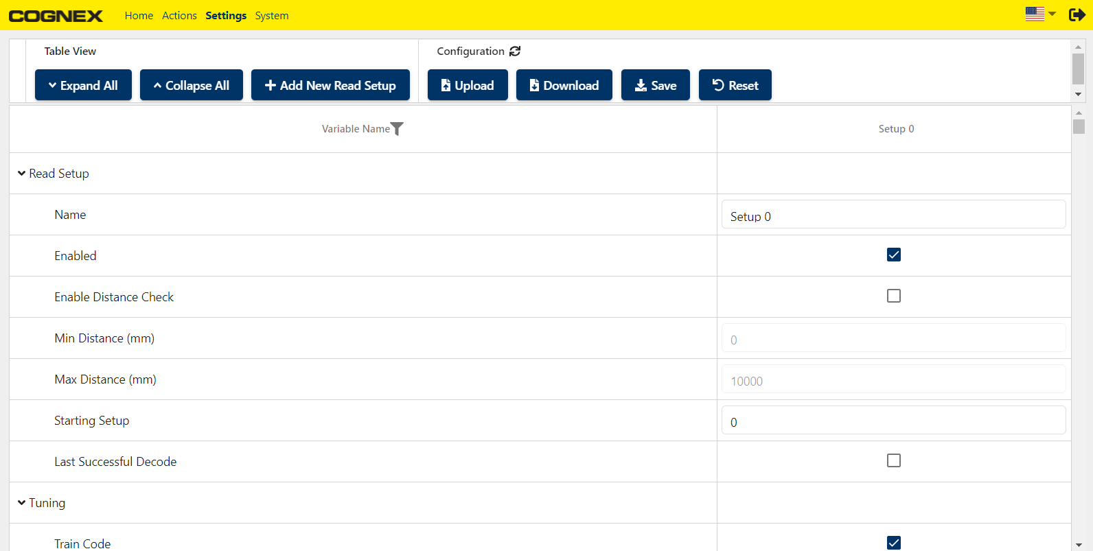 The settings table provides you with detailed and in-depth configuration options for all reader functionality. Each setting corresponds to a control command for the reader. For a detailed description of the available settings for the reader you are configuring, see the corresponding control commands for the reader in the DataMan Control Commands Documentation.