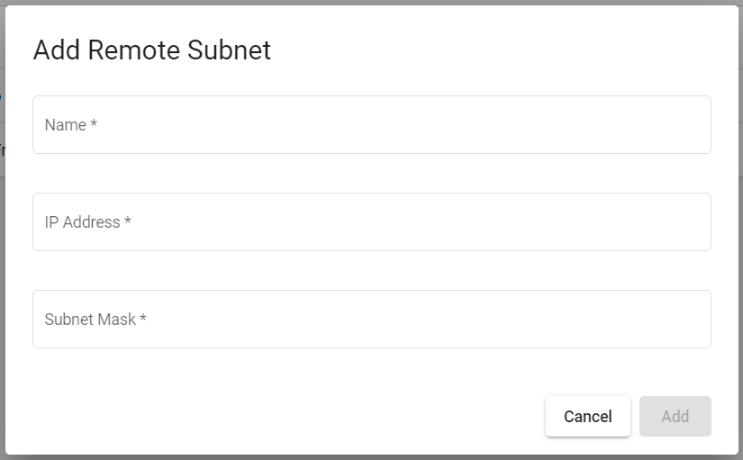 Click on Add Remote Subnet to open the Add Remote Subnet pop-up dialog:
