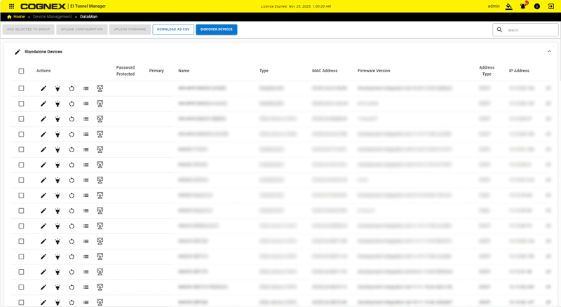 The readers found on the network appear on the DataMan page of the Device Management app.