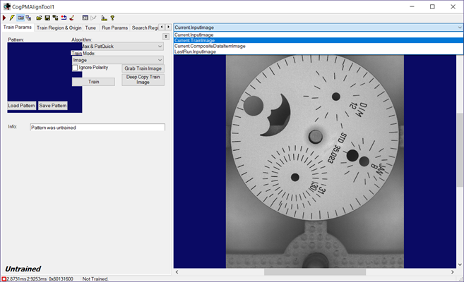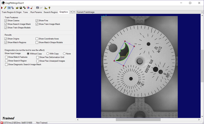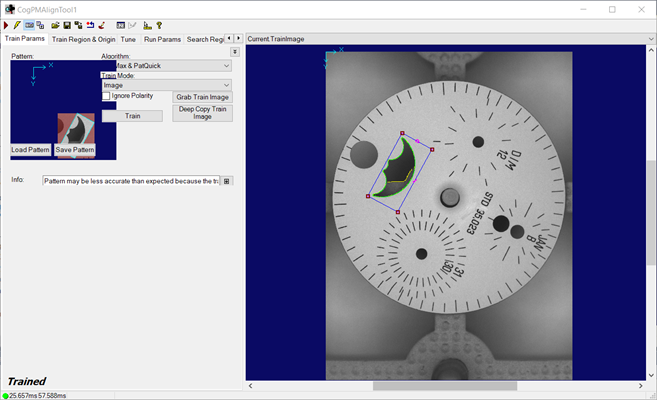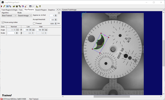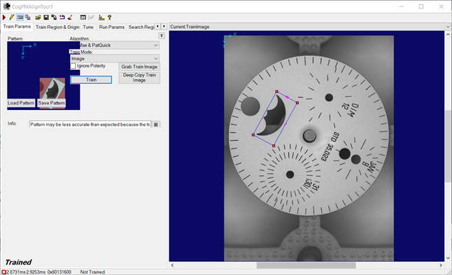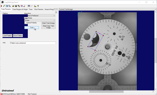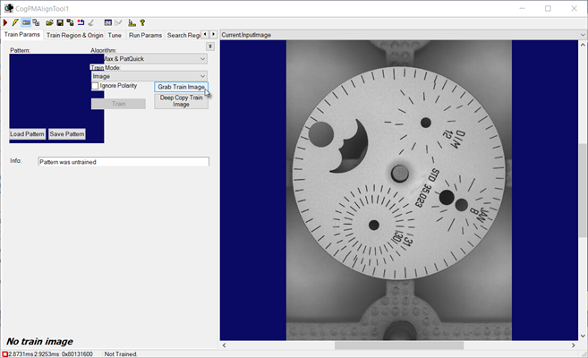 Press the Grab Train Image button to have the tool use the current image as the training image.