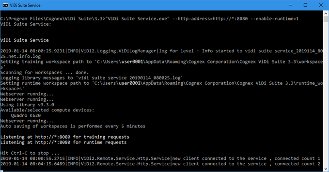 ViDi Suite サービスを使用すると、ViDi Suite のリモート学習操作またはランタイム操作を行うことができ、複数のクライアントがサービスにアクセスできます。学習サービスとして、ワークスペースをホストし、学習を実行できます。ランタイムサービスとして、ランタイムワークスペースと処理をホストします。