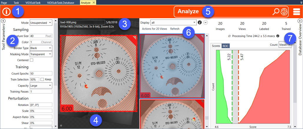 This topic provides an overview to navigate the ViDi tools. The ViDi tools share a common layout: