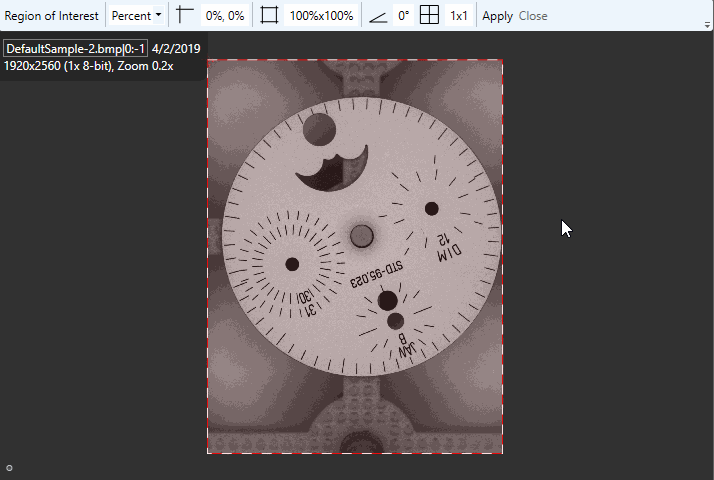 ツールが最初に追加されたときには、デフォルトの対象領域ツールバーが画像の上部に表示されます (右クリックメニューから [ROI の編集] を選択して開くこともできます)。