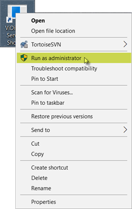 - ViDi Suite サービスのアプリケーションのショートカットバージョンに移動し、アプリケーションを右クリックして [プロパティ] を選択します。