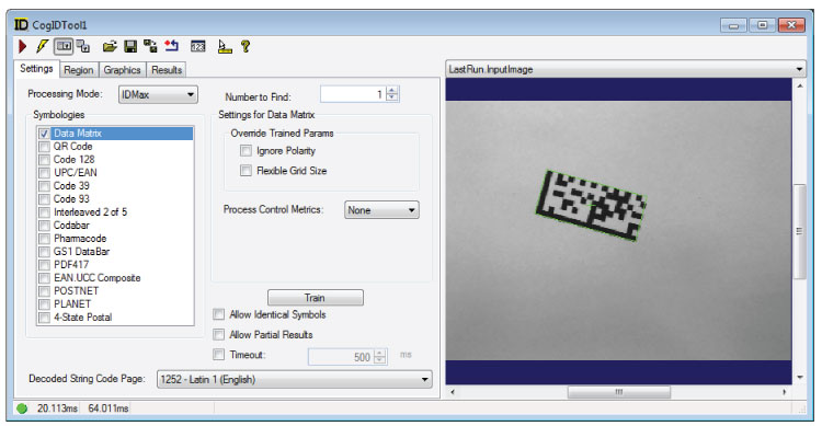 Decoding 1D symbologies typically requires no training, but the ID tool can be trained depending on your vision application and the processing mode you choose. See the section Processing Modes for more information.
