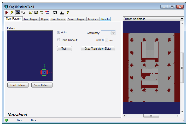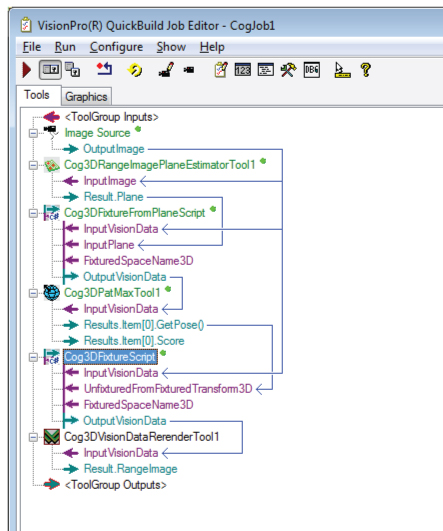 Run the Job to give the Cog3DPatMaxTool the 3D range image from the Cog3DFixtureFromPlaneScript CogToolBlock.