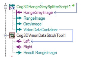 Your Cognex 3D sensor can capture 3D RangeWithGrey images that contain both height-profile information and 16-bit greyscale data, but a Cog3DVisionDataStitch tool cannot accept a 3D RangeWithGrey image directly. You must use a Cog3DRangeSplitterScript CogToolBlock to split the image into its 3D range image and grey image components.