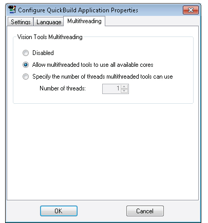Cognex recommends you enable multithreading for conversion operations. In QuickBuild, choose Configure->QuickBuild Application Propertiesand enable multithreading as shown: