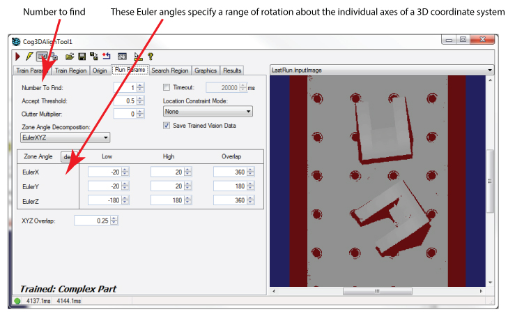 - Click the Run button and allow the tool to search for the current 3D range image for the trained 3D model.