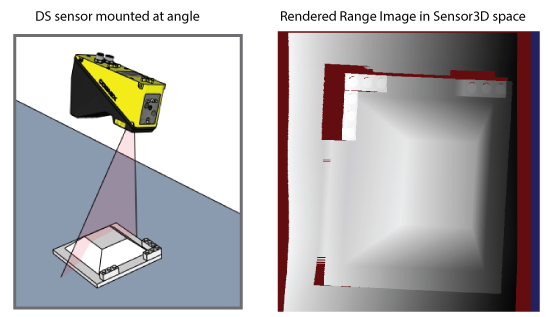 3D tools such as 3D Height Calculator tool and 3D Volume Calculation tool generate more accurate results when the sensor is oriented perpendicular to the object, so your application might employ a strategy similar to the following in order to rerender the range image :