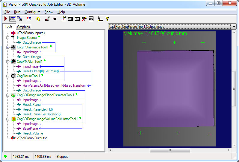 The 3D Volume sample Job uses 3D volume calculation to find the volume of an object.