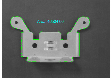 As your QuickBuild CogToolGroup or CogToolBlock executes you might want to use a CogGraphicLabel to display the results from vision tools that have already run. For example, the following figure shows a Job where the Area result from a CogBlobTool has been added to the display: