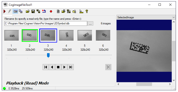 - The SelectedImage displays the currently selected image in the image file that will become the LastRun.OutputImage the next time the tool runs. The thumbnail image in the edit control has a blue outline.