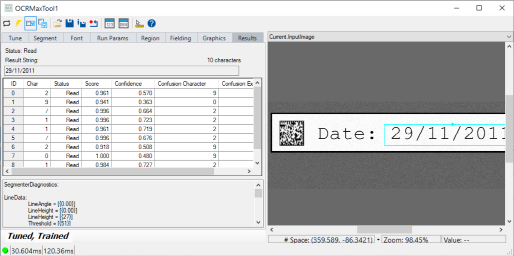 - The Current.InputImage buffer contains the next image with a character string the OCRMax tool will analyze, plus any verification graphics you might enable.