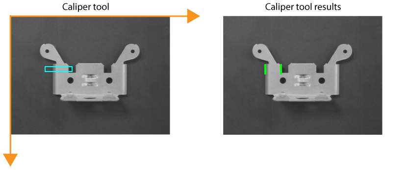 You can place a vision tool on the root space coordinate system and analyze a run-time image. For example, you can add a Caliper tool to locate an edge pair: