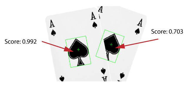For example, the following image shows two found patterns and their respective search scores: