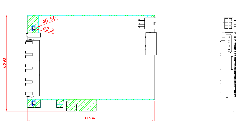 The following image shows the dimensions of the CFG-8734 frame grabber: