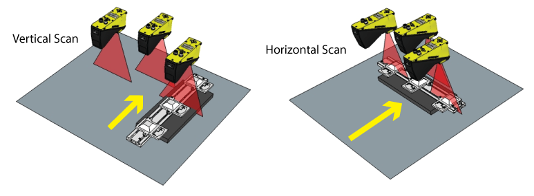 The following figure illustrates both types of scans for a configuration of 3D sensors: