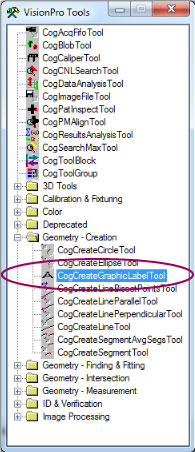Find the CogCreateGraphicLabelTool under the Geometry - Creation folder of the VisionPro Tools palette: